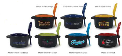 Matte Black bowl with glossy colored inside. Comes with matching spoon.