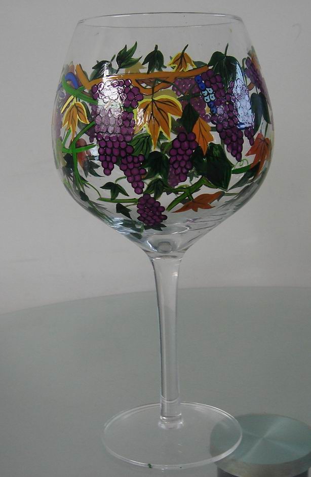 TIFFANY GRAPEVINE HAND PAINTED WINE GLASS IN GIFT BOX
