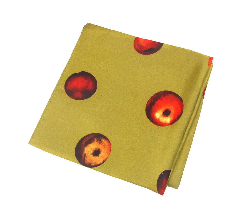 Inspired by the works of Paul Cezanne Green background with Cezzane's classic still life apples on a scarf